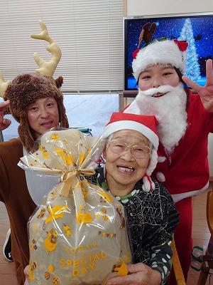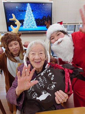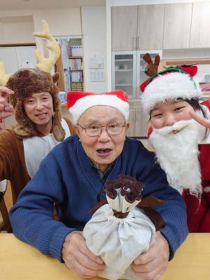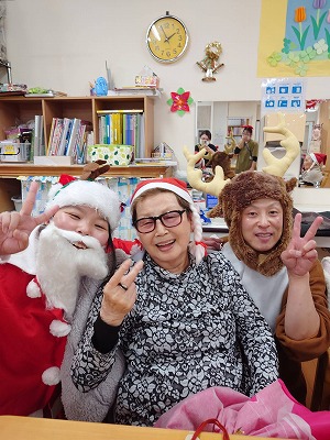 サンタクロースの登場に皆さんニコニコ🤭「誰~?」とサンタの正体が気になるようでした🤗