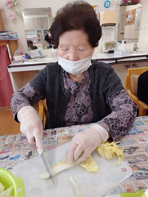 野菜を切る仕草は、皆さん現役そのもの👍「もっと切るよ!」と元気なお声が飛び交っておりました🤭